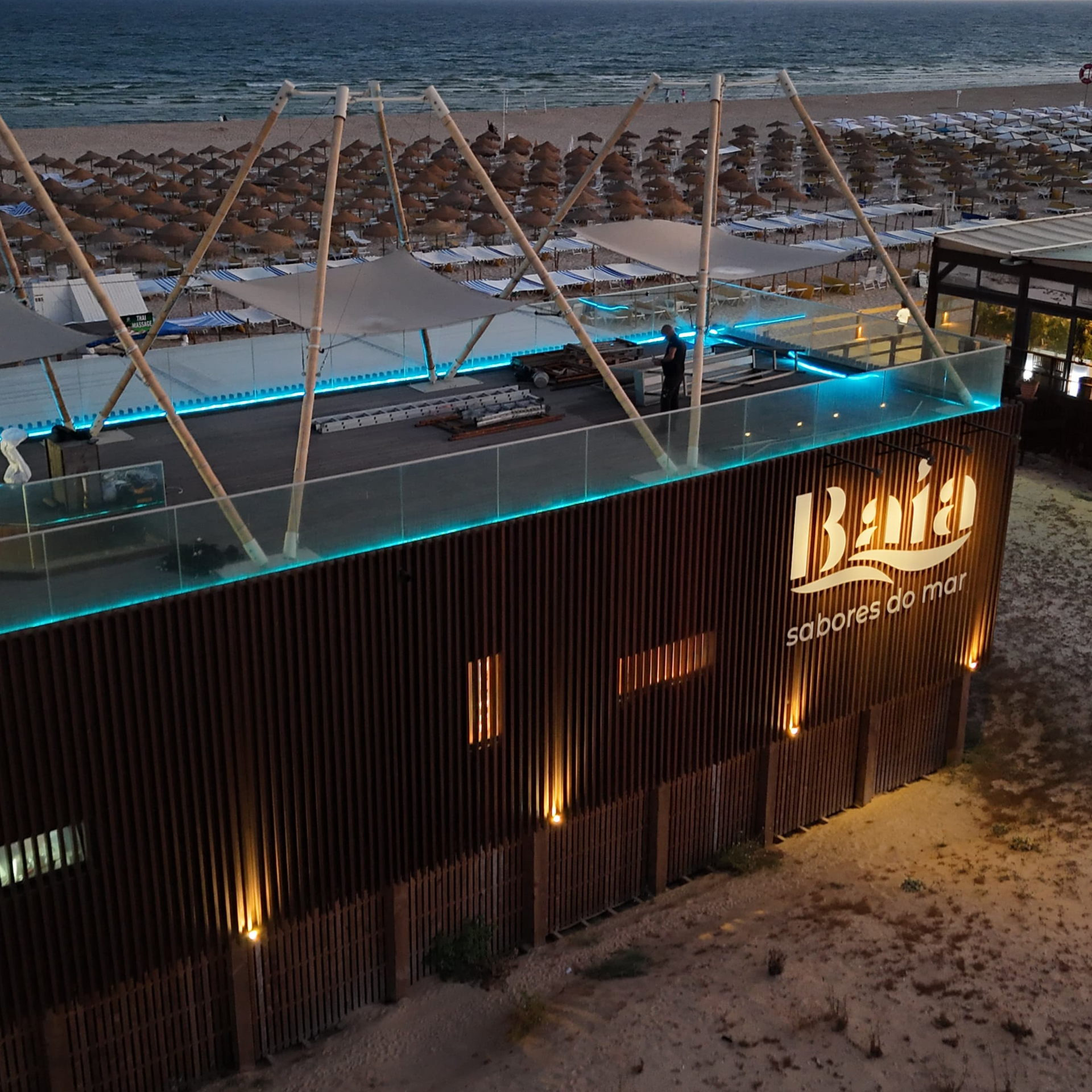 Proteção solar e contra chuva desenhadas para o exterior do seu espaço ou evento.